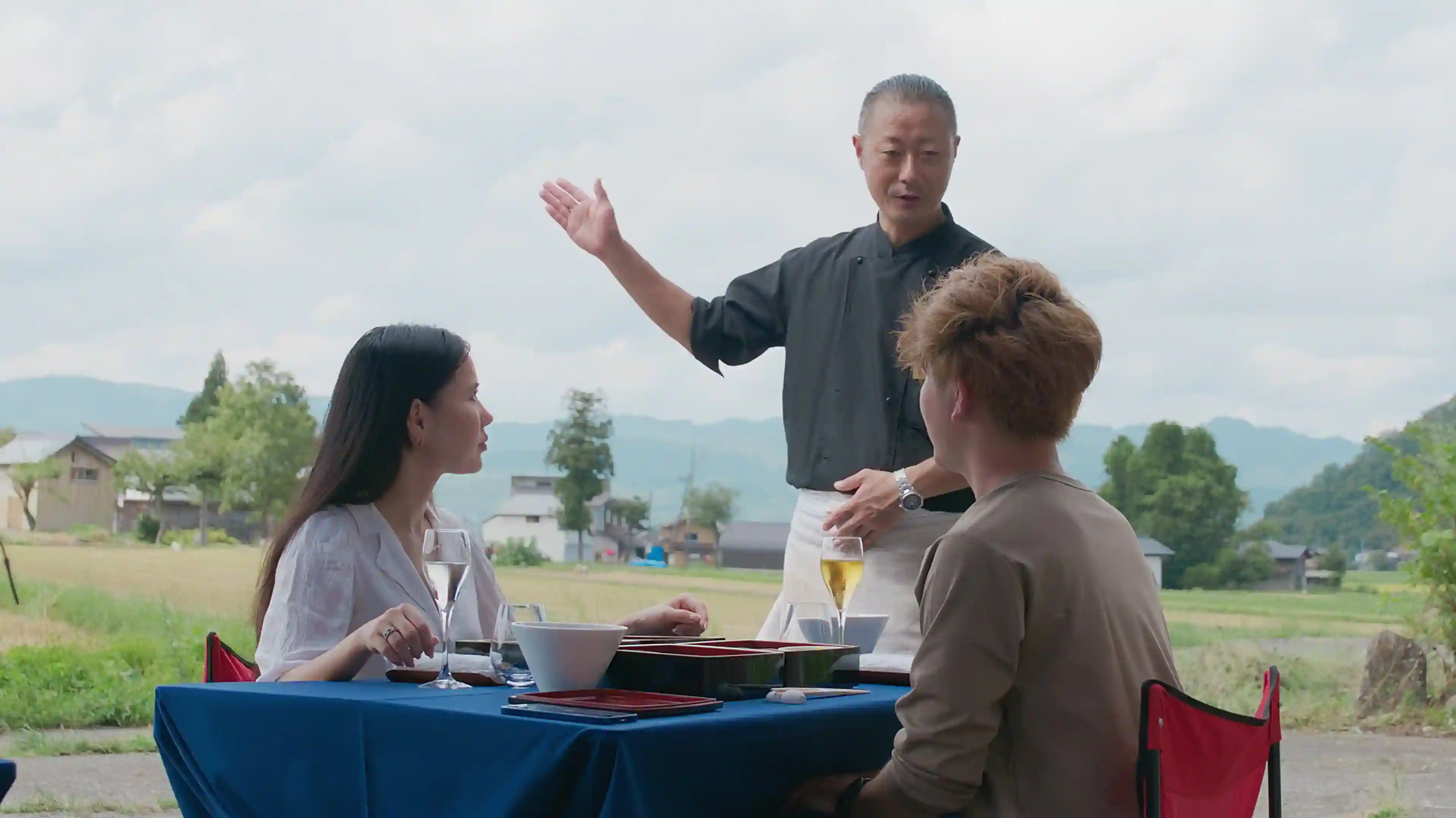 This is an experience where you can indulge in dishes crafted by the chef of 'Ryugon' amidst the great outdoors. Located within rice fields, the restaurant allows you to feel the gentle breeze of the land and relish the scenic beauty of the Satoyama (countryside) while enjoying the regional flavors in a course meal.