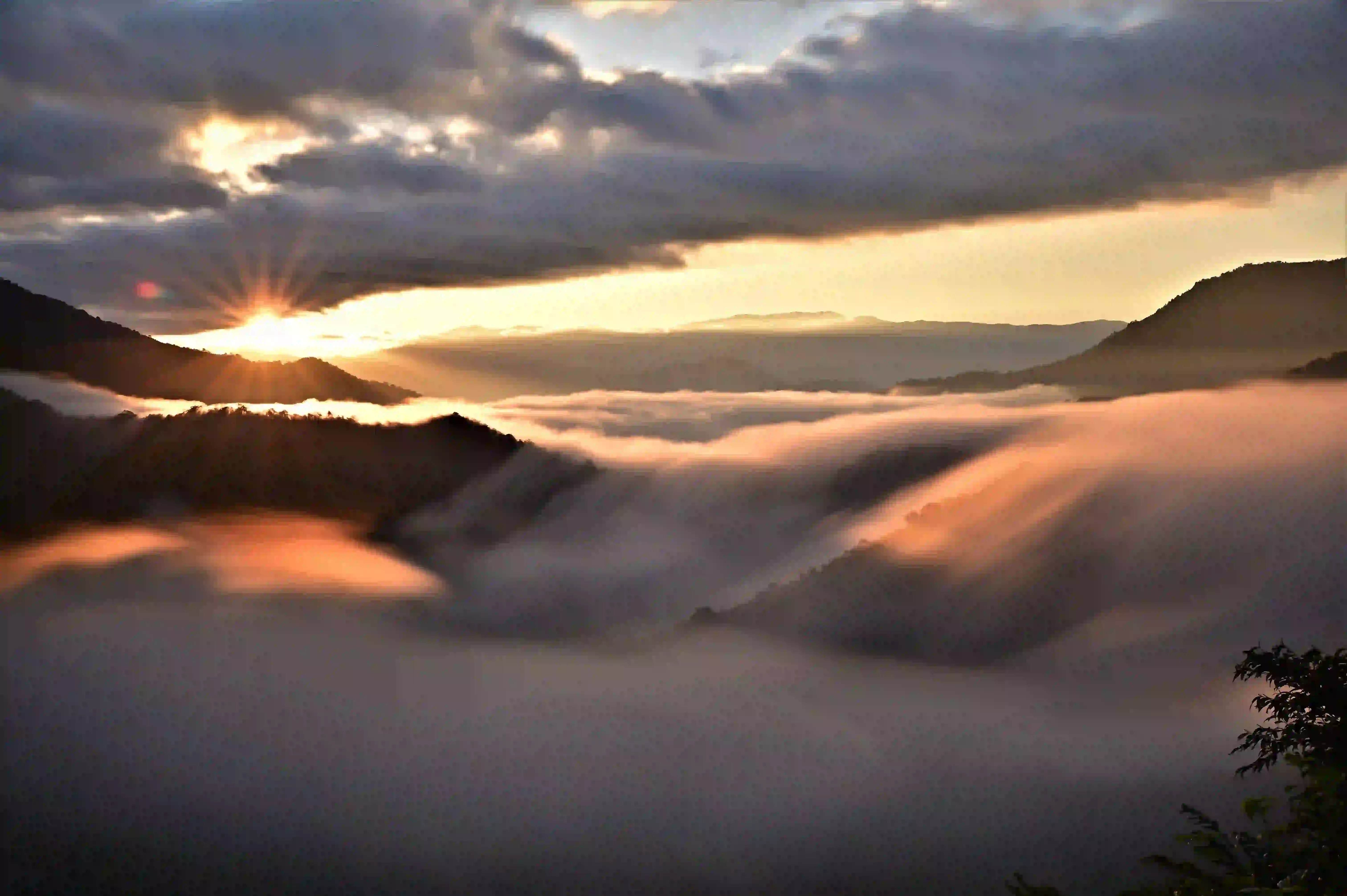 From the mountaintop, you can overlook the captivating spectacle of 'waterfall clouds' cascading like a waterfall below, creating a fantastical landscape that takes your breath away.